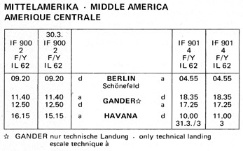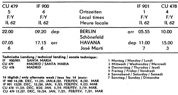 Wöchendlicher Flugplan Havanna-Berlin für CUBANA und INTERFLUG 1973