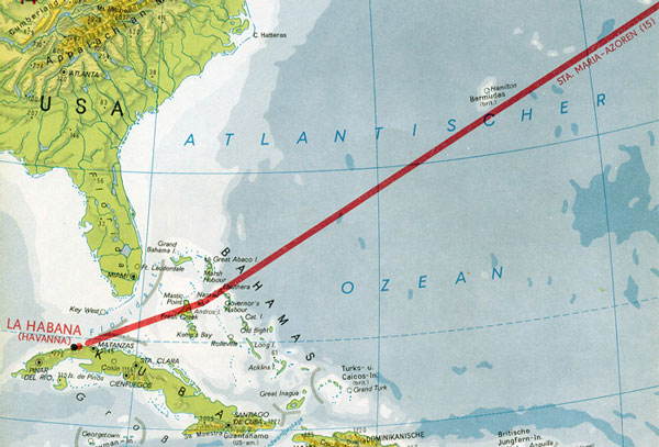 Aber schon im Flugplan vom 01.11.1975 bis 31.03.1976 ist die Havanna-Strecke über Gander/Neufundland geführt. Die loxodrome Streckenführung ist auf grund der Abflachung zu den Polen hin kürzer als die orthodrome Strecke (auf einem Großkreis oder Breitengrad) über die Azoren. Die Nordatlantiküberquerung im NAT (North Atlantik Tracksystem) war damals navigatorisch gesehen mit der zur Verfügung stehenden Geräteausrüstung nicht einfach. Am Anfang wurde noch mit Loran C gearbeitet. Ein Langstreckennavigationssystem mit Langwellenstationen rund um den Globus, ursprünglich von der US-Airforce aufgebaut. Ich habe es an Board nicht mehr kennengelernt.